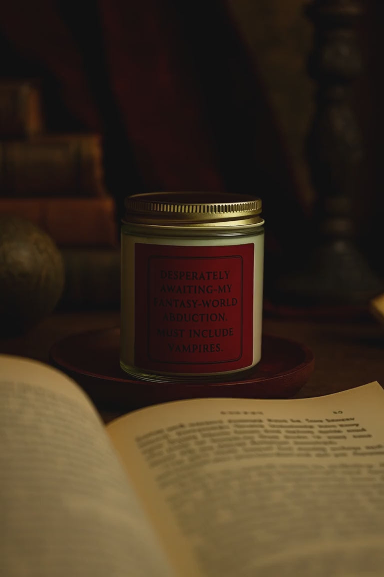 Desperately Awaiting My Fantasy-World Abduction | Vampire Candle | Dark Romance Candle | Bookish Gift | Book Girl World